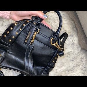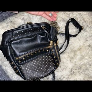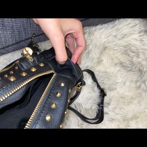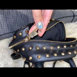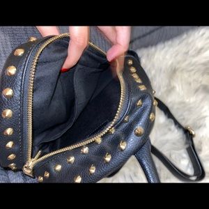 Bebe black mini backpack with gold accents. Has adjustable straps and super cute!
