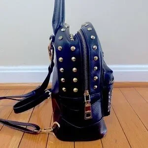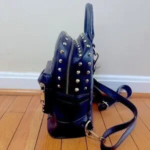 Black mini backpack with gold rhinestones. Perfect for going traveling with.
