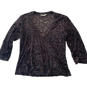 Bebe Moda Burnout Velvet Brown V-Neck Top, Women’s L Whimsygoth Y2K 90s Romantic