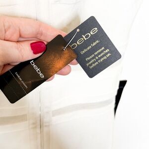 Bebe dress, white bandage dress, strappy party dress, mesh detail dress, special occasion dress, new with tags, elegant cocktail dress.