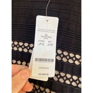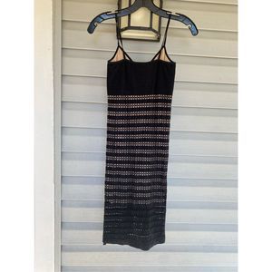 Bebe NWT Open Stitch Stripe Dress- Bodycon Black/Nude, Size Small, MSRP $69