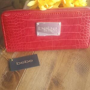 Bebe Natalie Croco Full Zip Wallet NWT
