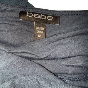Bebe Navy Blue Wrap-Style Dress With Sheer Overlay & Belted Waist Size M
