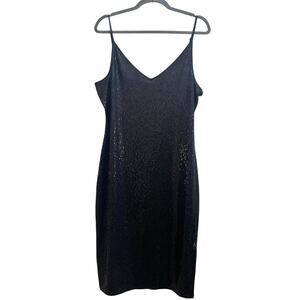 Bebe New Black Sequin Spaghetti Strap Bodycon Mini Dress Size XL