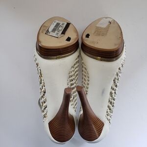 Bebe Nina White Weave Peeptoe Platform Heels Sz 10