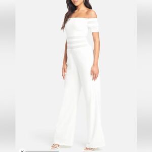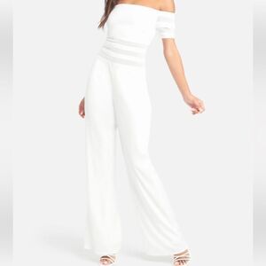 Bebe OFF SHOULDER MESH PANEL JUMPSUIT Sz M