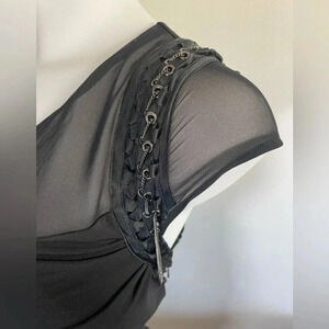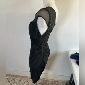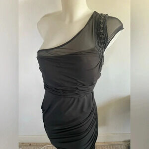 **Bebe One Shoulder Black Mini Dress Bodycon Chain Cocktail Little Black Dress - Size Medium, EUC**