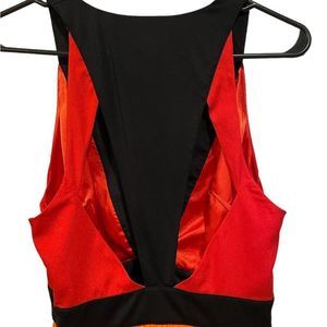 Bebe Orange Black Red Asymmetric High Low Cutout Geometric Colorblock Mini Dress