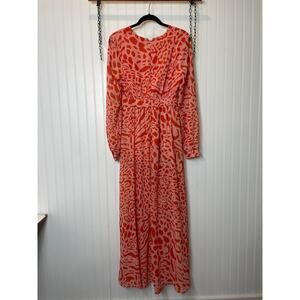 Bebe Orange Leopard Print V-Neck Fit And Flare Maxi Dress Womens Size S