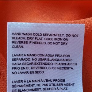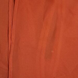 Bebe sheer orange blouse with flowy, short sleeves, a zippered front, and keyhole opening in the back with silky lining on either side of the zipper.