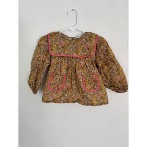 The perfect fall set, Bebe Organic collared shirt and bloomer set from Maisonette - liberty fabric and sweet ric rack trim. Size 12 months, EUC