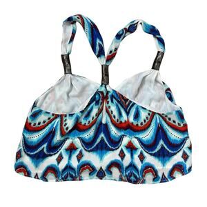 Bebe Paisley Blue Multicolor Summer Racerback Crop Top Size Large