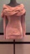 Bebe Pale Pink Off The Shoulder Sweater. cowl-neck with a chunky, braided or knotted knit detail around the collar that drapes over the shoulders.