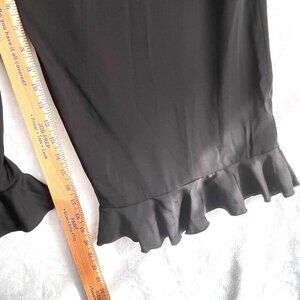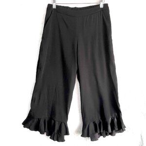 Bebe Pants Womens M Black Satin Wide Leg Cropped Ruffle Hem Boho Lagenlook