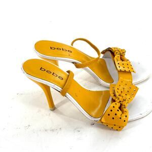 Bebe Perforated Mules Heels. Yellow leather. Size 5.5