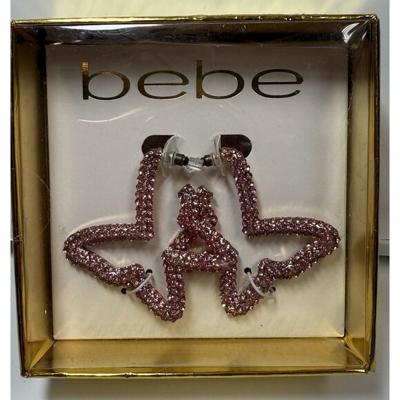 Bebe Pink Rhinestone Butterfly Hoop Earrings New