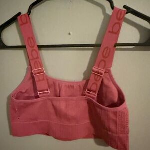 Stylish pink sports bra. Features branded straps. Comfortable fit.