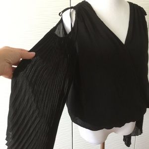Bebe Pleated Sleeves cutout Shoulder Blouse