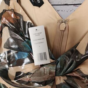 Bebe Print Lame Long Sleeve Twist Front Dress Gown 4 NWT