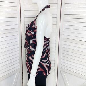 Bebe Zebra Silk Chiffon Ruffle Trim Halter Neck Blouse