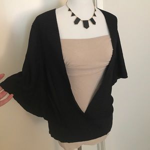 Preloved 🎀Bebe🎀 Pullover, glistening black light tunic sweater/top & nude long, tube top shirt with built in shelf bra. Both tops are Bebe and together they are just gorgeous on!! Because of the drapey, glistening Black pullover, it is so figure flattering!!! And the stretch in the nude top really forms a woman’s sexy curves!! Tops are medium & have silk Bebe shirt hanger ribbons! Just an amazing overall quality! ♥️ please check out my other listings and ratings as all are PHENOMENAL 😍♥️🎁🎀