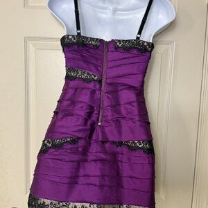 Bebe Purple Satin Bandage Dress w/ Lace Trim - XXS