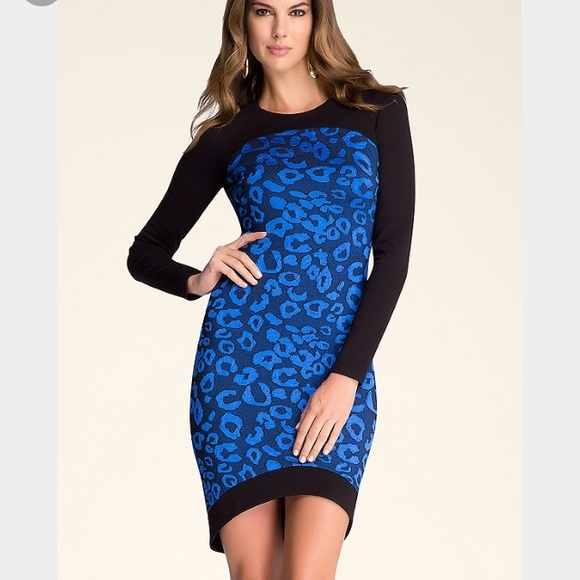 Brand new w tags. Glam bodycon dress dazzles with chic fabric mix and hi-lo hem. Long raglan sleeves. Hidden back zip closure. Partially lined.
