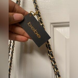 Bebe Rain Leather Shoulder Bag Black Gold NWT