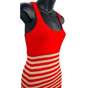 Bebe Red Cream Stripe Maxi Tank Dress Size Small S Bodycon Sleeveless Scoop EUC