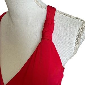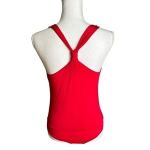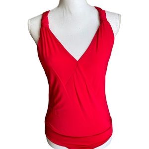 Bebe Red Halter V neck Bodysuit Top Size Small
