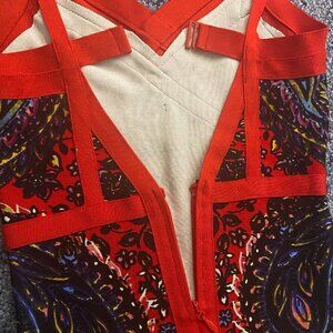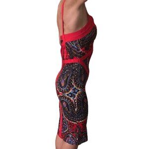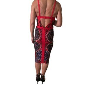 Bebe Red Print Bodycon Mid Dress Size XXSP