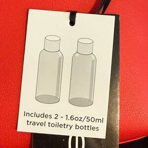 The Bebe Rhinestone Cosmetic Bag is a stylish and functional accessory, perfect for organizing your makeup essentials. Crafted from durable vegan leather material, and a secure zipper closure, making it ideal for travel or daily use. Includes two travel bottles