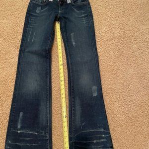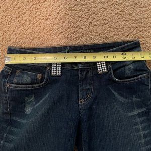 Bebe Rhinestone Crystal jeans. WOW! They are GORGEOUS. Low rise boot cut , very well made, and perfect condition. All marks or wear are factory made. They have stretch and very comfy. Size 27. Fits like 3/5 depending on how you like your jeans to fit. Measurements are in photos