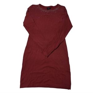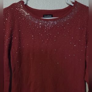 Bebe Rhinestone Red Long Sleeve Crew Neck Sweater Dress
