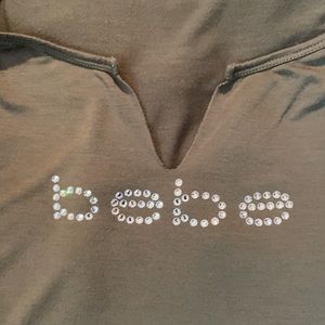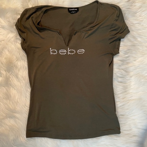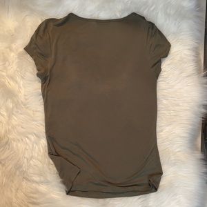 Formfitting and very comfortable T-shirt with a cut V-neck. This is an army green or olive green color.