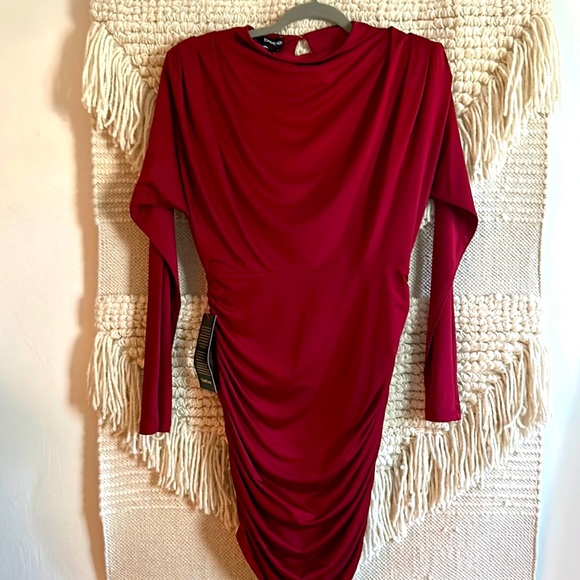 Get ready for the season with this sexy long sleeve Bebe dress.