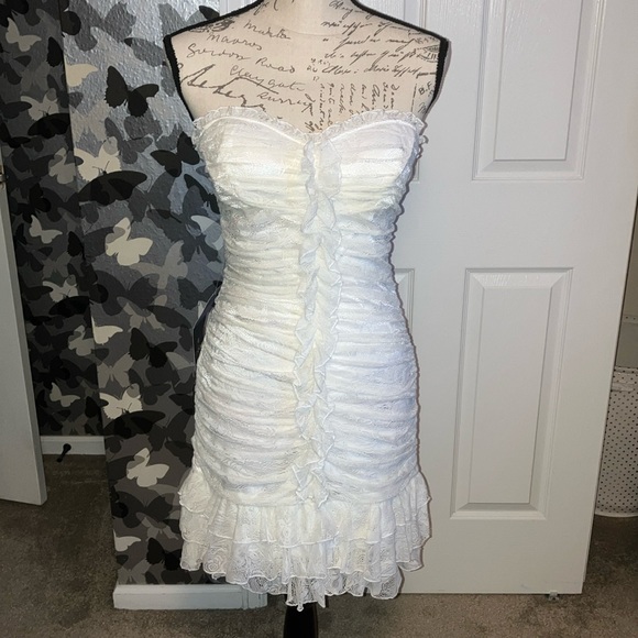 Bebe Lacey Ruffle Ruched mini dress NWT perfect condition size M never been worn