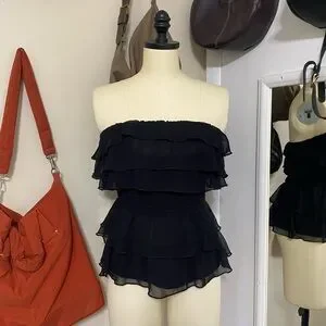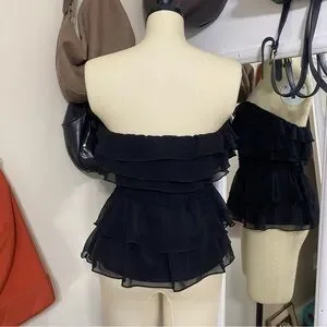 Ruffle strapless bebe top. Gives a gorgeous flattering hourglass figure. Tagged XS but best for S. Silky lining.
