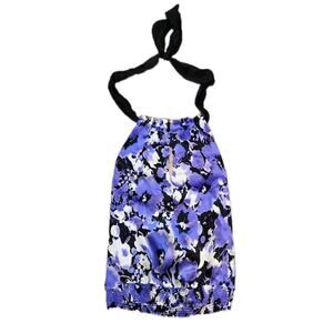 Bebe SILK Purple Floral Halter V Neck Tie Top XS Backless Vacation
