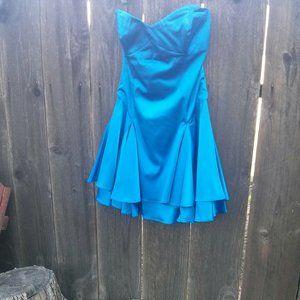 Bebe Satin Blue Strapless Sweetheart Dress Party Cocktail Retro Y2K 80s Dance