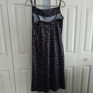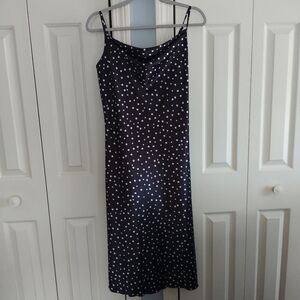 Bebe Satin Midi Silhouette Black & White Polka Dot Dress M