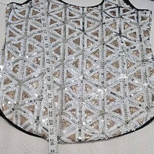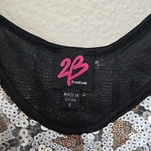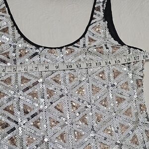 Bebe Sequin Gray and White Tank Top with Black Accents small