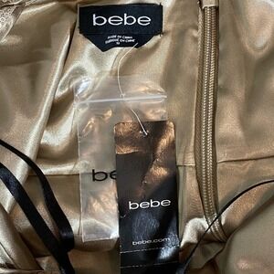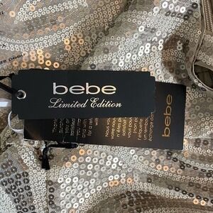 Bebe Sequined Deep V-Neck Fit and Flare Mini Dress Womens 10 Gold NWT