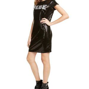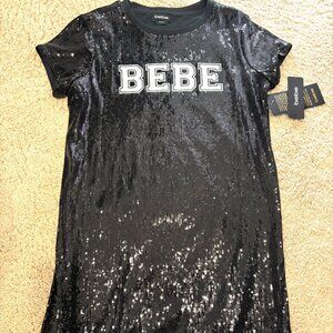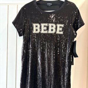 NEW! Bebe Logo Black Sequin T-Shirt Dress. Perfect for a night out! Combines the fun and sporty sides of your aesthetic! Great stretchy fabric. Allover sequins; logo at chest. I bought it and never had the chance to wear it. Super cute!