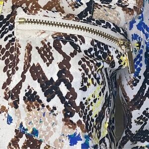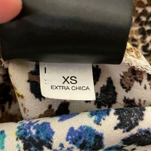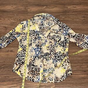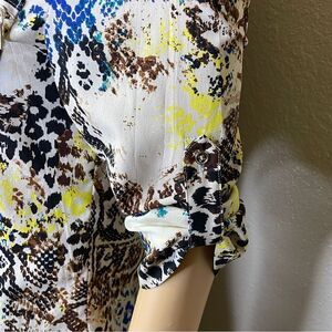 Bebe Serpentine Deep V Button Down Blouse Cream Yellow Blue Brown Size XS