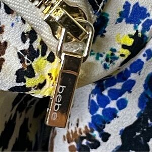 Bebe Serpentine Deep V Button Down Blouse Cream Yellow Blue Brown Size XS