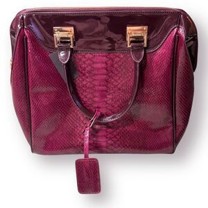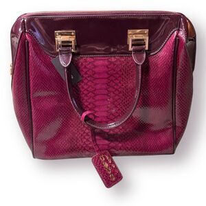 Bebe Set Snakeskin Embossed Burgundy Satchel Hand Bag with Fur Top One Size