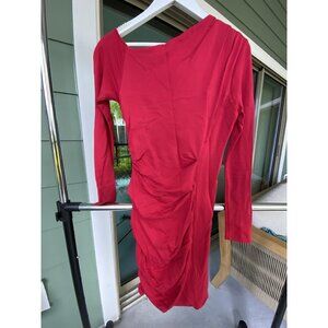 Bebe Sexy Dress Asymmetrical Zipper Long Sleeve Lipstick Red Vintage Y2K Size XS