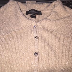 Bebe Shimmery Tan Sweater Blouse w/Shiny Buttons