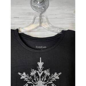 Bebe Shirt Womens XL Black Silver Snowflake Short Sleeve Tee NWT Holiday Glam